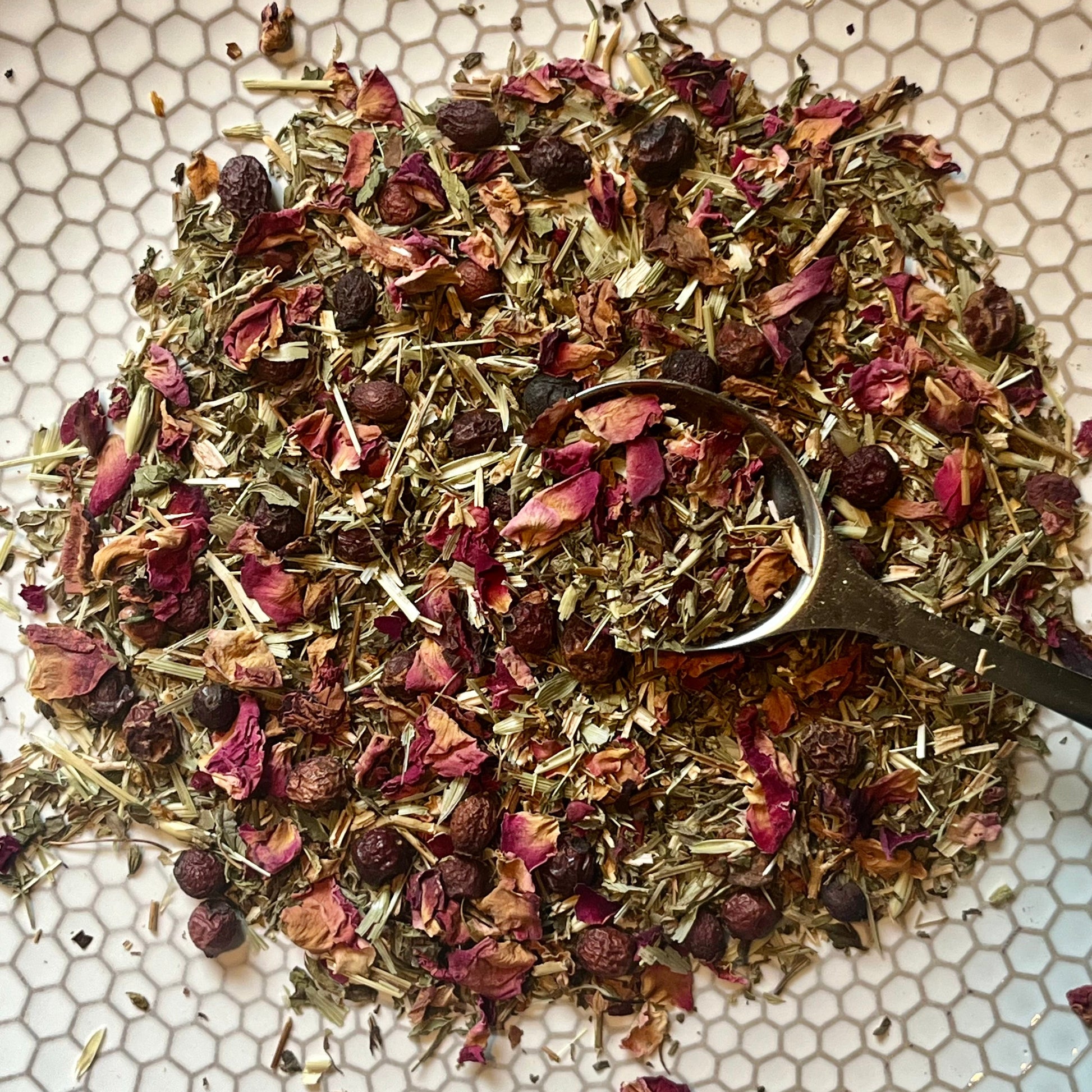 This gentle, nourishing blend is crafted with care for moments of grief, heartache and emotional overwhelm. Calm the nervous system, uplift the spirit and hold space for healing as your soul feels held in sacred space. Whether you're navigating the loss of a loved one, moving through waves of depression or anxiety or simply seeking solace in hard times, this tea offers a warm, supportive presence.